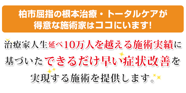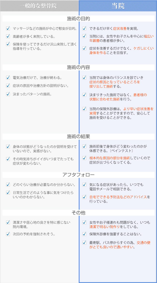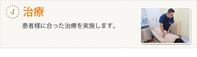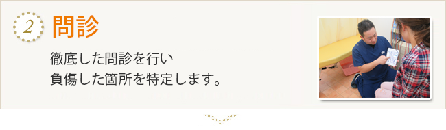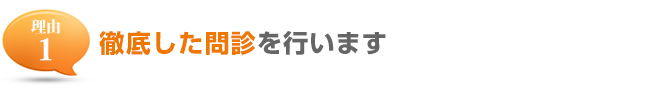 一人一人の患者さまと直接向き合い、徹底した問診を行うことにより患者さまに合った適切な治療を行っております。 できるだけ早い症状改善を実現するためには的確かつ正確な問診が必要になります。問診を丁寧に行うことで 腰痛や肩こりなどの慢性的な痛みや急性の痛みもできるだけ早く改善することができます。