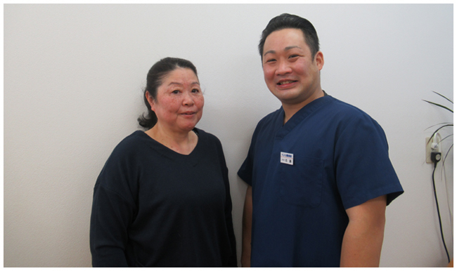おかげさまでずいぶん肩が楽になりました。肩だけでなく、不安だった腰や手首なども見てもらって体を動かすのが楽になりました。ありがとうございます。